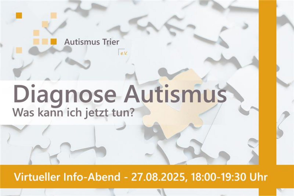 Bei Interesse an einer Teilnahme bitten wir um Anmeldung, entweder per Email an selbsthilfe@autismus–trier.de oder telefonisch unter 0651-603441-32. Wir schicken Ihnen dann gerne den Link zur Veranstaltung zu.